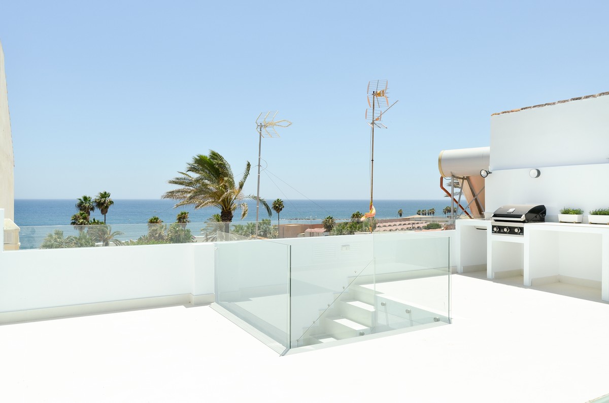 Overview: Luxury Frontline Beach House in Estepona! In the Estepona Marina, with stunning views of the Mediterranean Sea! Completely renovated with high quality materials following a modern line of design with an Andalusian touch outside. Located in a very attractive area, next to the sea and walking distance to all the pleasures and amenities. 3 bed - 2 bath - 80m2 built - 60m2 terrace PRICE 350 000 EUR ???????????????.