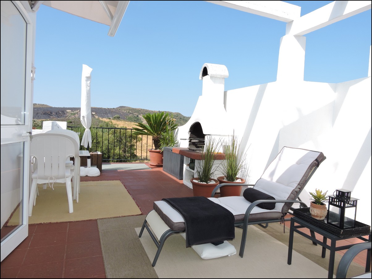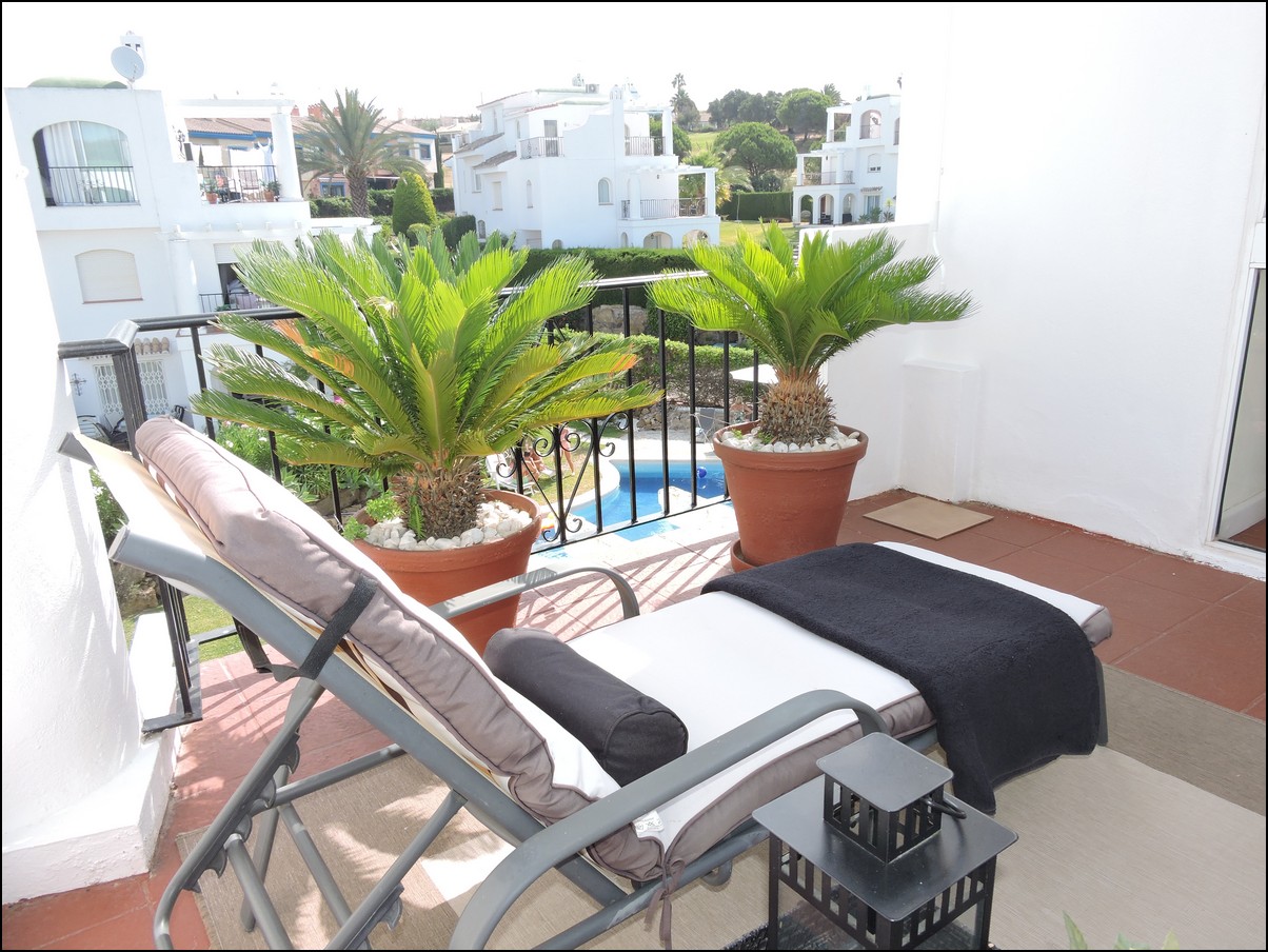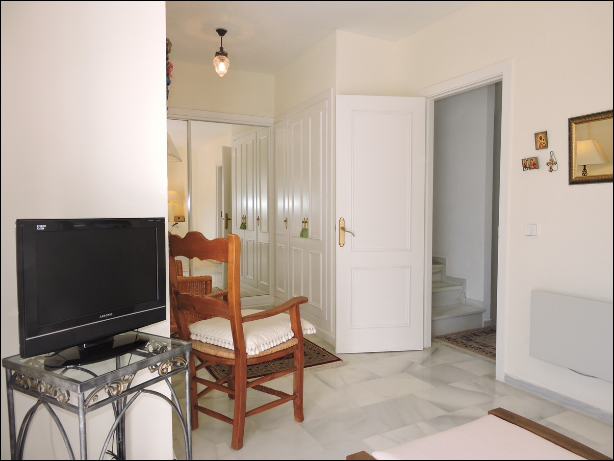 Overview: Townhouse in Duquesa, Altos de la Duquesa. Lovely exclusive small urbanisation with very well kept gardens, pool and the townhouse is in immaculate condition. The house is sold fully furnished and all furnishings are of high standard, beautiful classic décor. Entering the urbanization you have your own private / street parking in front of the door of your house. Little front terrace. Inside, nice good fully fitted corner kitchen. Guest toilet. Good size dining and living room, with fireplace. From the lounge walk out onto a nice terrace looking out onto the gardens and communal pool. First floor two large en-suite bedrooms. Master bedrooms also has a nice terrace looking out onto the pool (South east). Upstairs another bedroom/ dining area at the moment. Barbecue, loungers and great area to bake in the sun. All in absolute fantastic condition. Great little holiday home or first residence. Townhouse in Duquesa, Altos de la Duquesa. Adosado en Duquesa, Altos de la Duquesa. Preciosa y exclusiva urbanización pequeña con jardines muy bien cuidados, piscina y la casa adosada en perfectas condiciones. La casa se vende completamente amueblada y todos los muebles son de alta calidad, hermosa decoración clásica. Al ingresar a la urbanización tiene su propio estacionamiento privado / en la calle frente a la puerta de su casa. Pequeña terraza delantera. En el interior, buena cocina de esquina totalmente equipada. Aseo de invitados Buen tamaño comedor y sala de estar, con chimenea. Desde el lounge salir a una agradable terraza con vistas a los jardines y la piscina comunitaria. Primera planta dos habitaciones grandes con baños en-suite. El dormitorio principal también tiene una bonita terraza con vistas a la piscina (sureste). Arriba, otro dormitorio / área de dining en este momento. Barbacoa, tumbonas y una excelente zona para hornear al sol. Todo en condiciones fantásticas absolutas. Gran pequeña casa de vacaciones o primera residencia. Sunflower Estates.