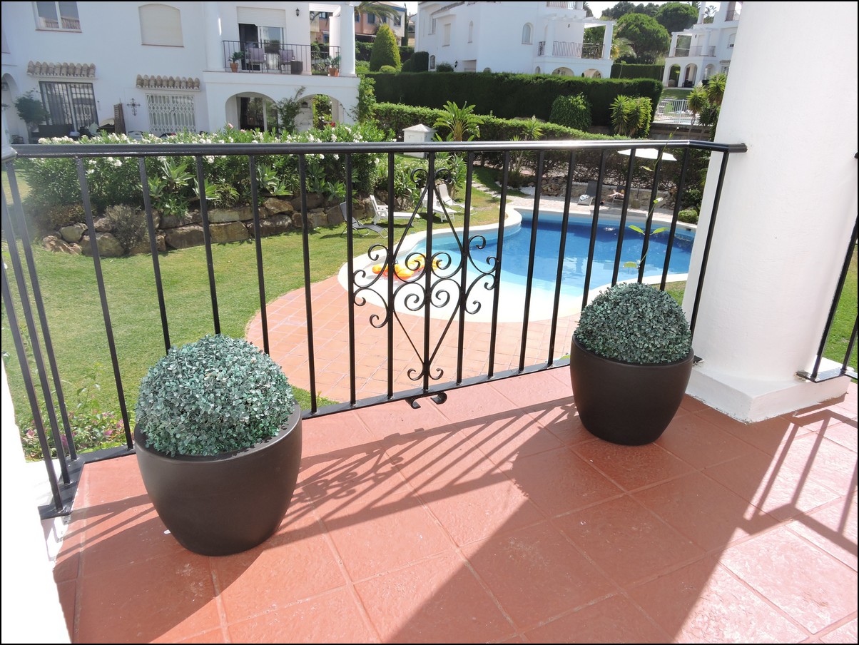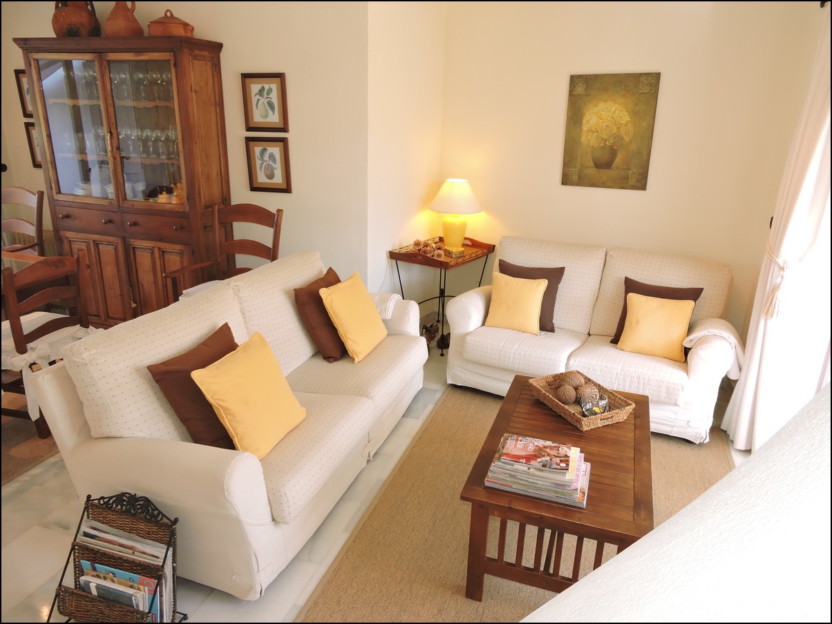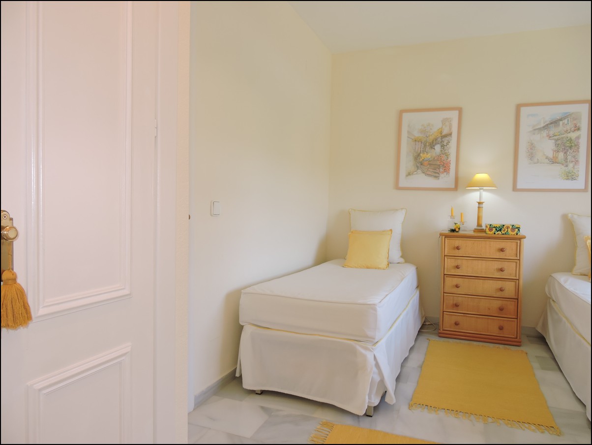 Overview: Townhouse in Duquesa, Altos de la Duquesa. Lovely exclusive small urbanisation with very well kept gardens, pool and the townhouse is in immaculate condition. The house is sold fully furnished and all furnishings are of high standard, beautiful classic décor. Entering the urbanization you have your own private / street parking in front of the door of your house. Little front terrace. Inside, nice good fully fitted corner kitchen. Guest toilet. Good size dining and living room, with fireplace. From the lounge walk out onto a nice terrace looking out onto the gardens and communal pool. First floor two large en-suite bedrooms. Master bedrooms also has a nice terrace looking out onto the pool (South east). Upstairs another bedroom/ dining area at the moment. Barbecue, loungers and great area to bake in the sun. All in absolute fantastic condition. Great little holiday home or first residence. Townhouse in Duquesa, Altos de la Duquesa. Adosado en Duquesa, Altos de la Duquesa. Preciosa y exclusiva urbanización pequeña con jardines muy bien cuidados, piscina y la casa adosada en perfectas condiciones. La casa se vende completamente amueblada y todos los muebles son de alta calidad, hermosa decoración clásica. Al ingresar a la urbanización tiene su propio estacionamiento privado / en la calle frente a la puerta de su casa. Pequeña terraza delantera. En el interior, buena cocina de esquina totalmente equipada. Aseo de invitados Buen tamaño comedor y sala de estar, con chimenea. Desde el lounge salir a una agradable terraza con vistas a los jardines y la piscina comunitaria. Primera planta dos habitaciones grandes con baños en-suite. El dormitorio principal también tiene una bonita terraza con vistas a la piscina (sureste). Arriba, otro dormitorio / área de dining en este momento. Barbacoa, tumbonas y una excelente zona para hornear al sol. Todo en condiciones fantásticas absolutas. Gran pequeña casa de vacaciones o primera residencia. Sunflower Estates.